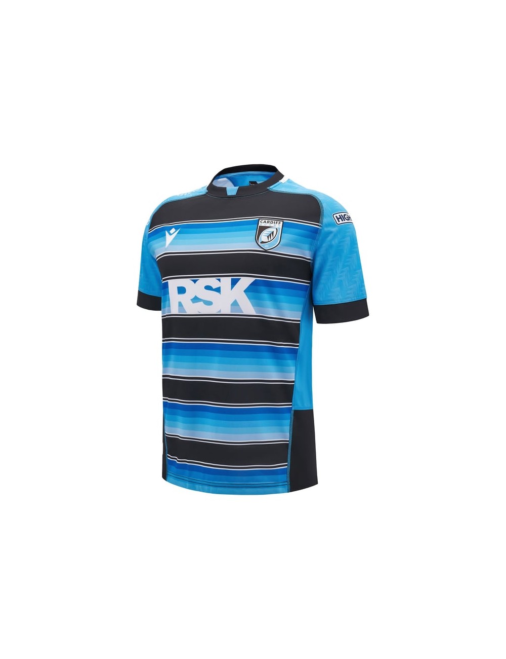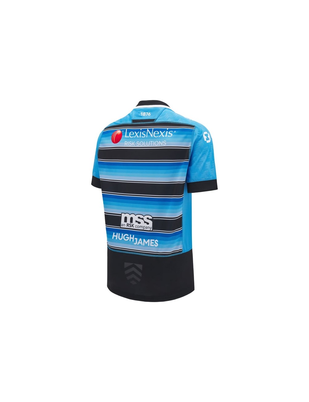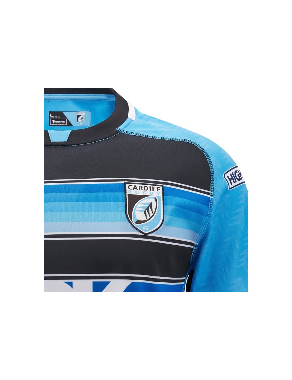 Maillot replica adulte Home2024/25 bleu à coupe ample avec cercles noirs et blancs, motif chevron embossé sur les épaules, col et poignets noirs et écusson du club sublimé sur le coeur.